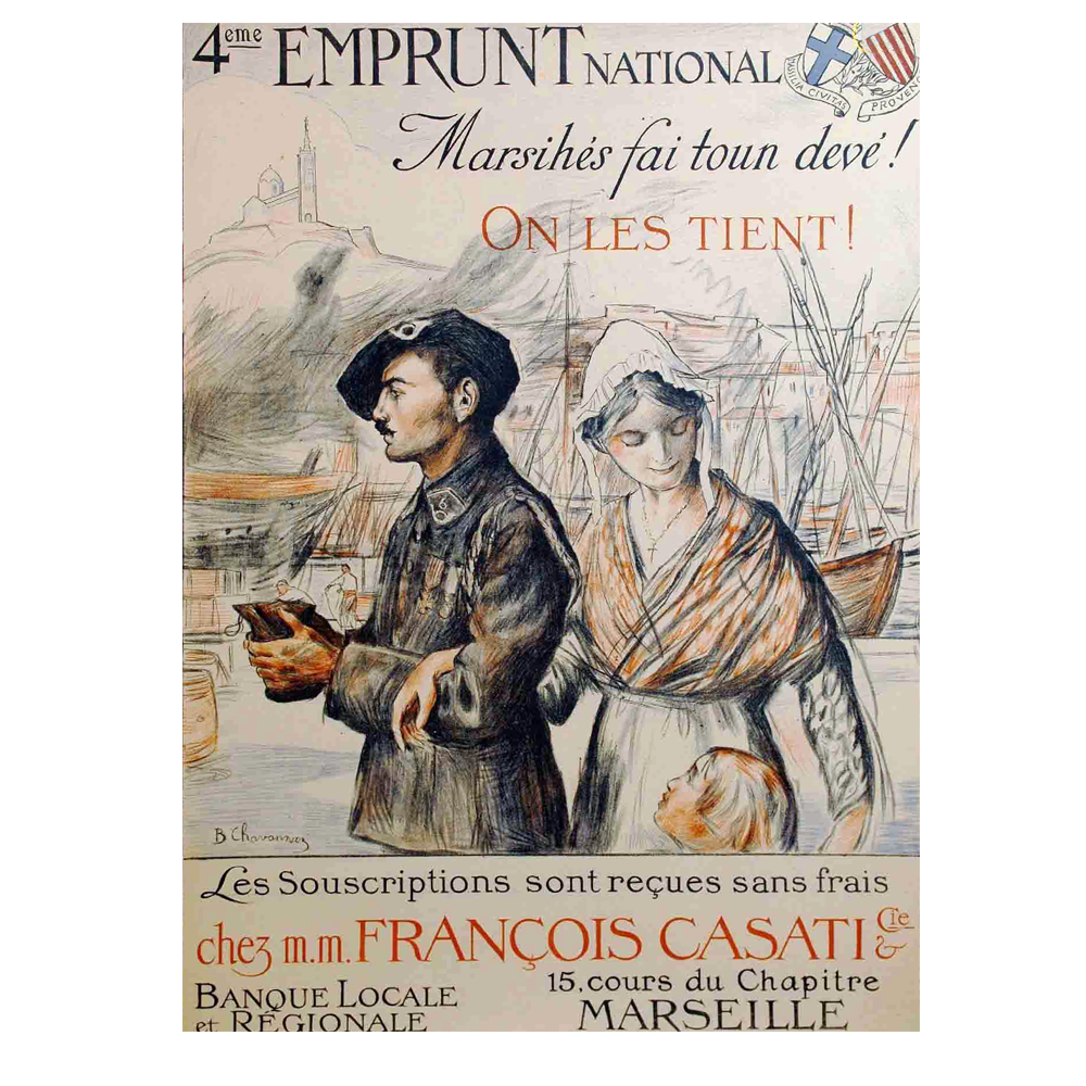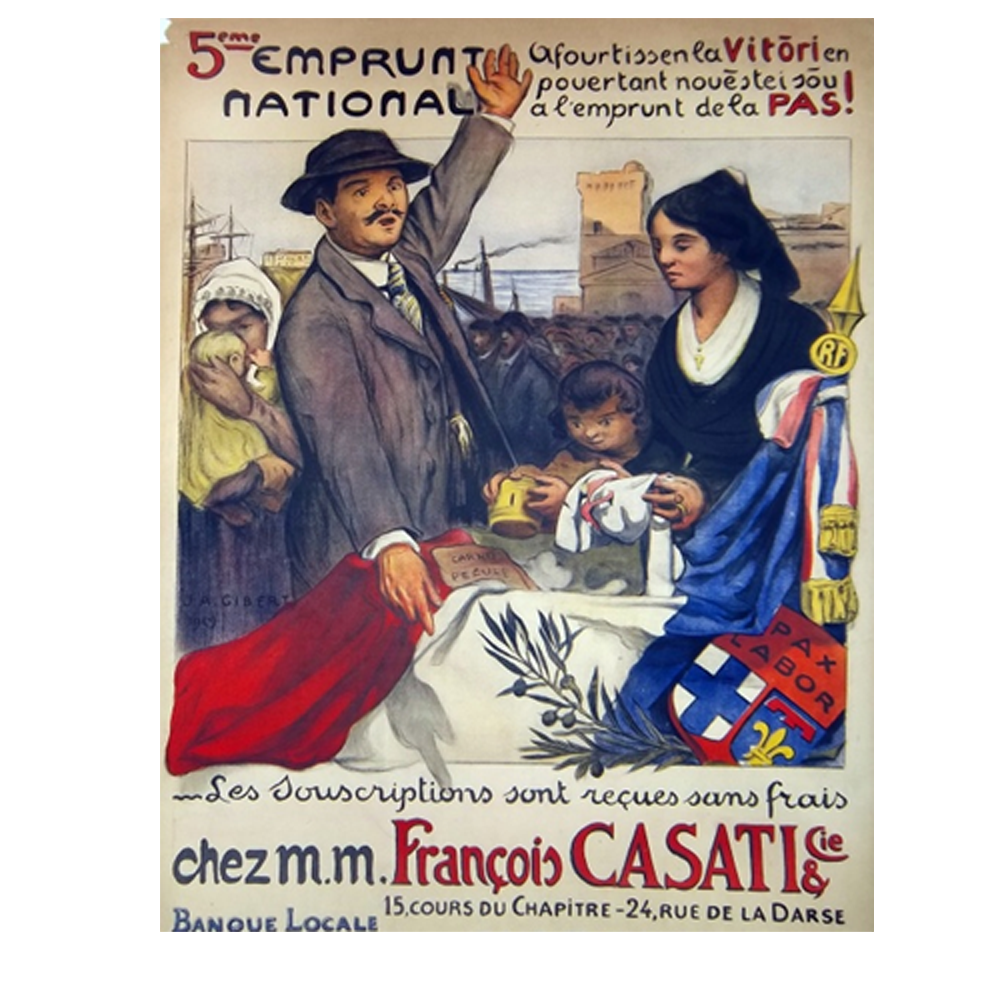 Aquela aficha difusada dins lo departament d’Aude es un document particularament original demest lo corpus de las afichas dels emprunts nacionals. Aicí pas d’imatge, e d’apèls pichons a l’emocion e a la solidaritat per los fraires e los filhs que son al front, ni d’apèls al patriotisme.